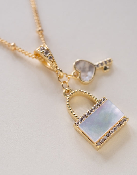Pearl Lock & Key Necklace